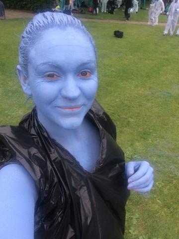 But there I was, nude, covered literally head-to-toe in blue body paint, wandering around the city centre, lying on the pavements, bending over and touching my toes (and yes we were all horrified that we had to do that) as if it were the most natural thing in the world.